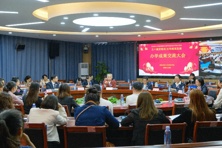 2023年12月9日下午,国际教育与外国语学院在国际交流中心222会议室举办了学院办学成果交流大会。党委书记潘文昊、院长冯丽、国际交流处副处长刘卫玲、副院长潘景丽、副院长蔡成龙、学院各教研室教师代表、历届校友代表及在校留学生代表参加本次大会。党委副书记伍红艺主持本场大会。