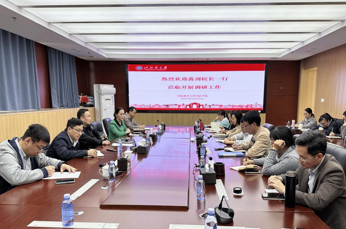 3月19日下午,苗剑校长一行莅临国际教育与外国语学院调研教学工作,调研组参观了学院语音实验室和会议室,检查了留学生上课情况。