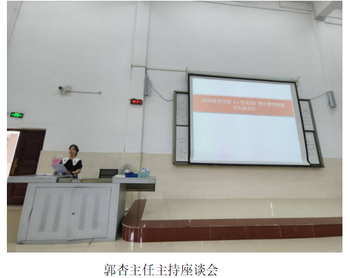为了深入了解《大学英语》课堂教学情况,进上步提高教学质量,大学外语部于5月9日在13-208召开了学生座谈会,由大学外语部主任郭杏老师主持。学生代表们勇跃发言,郭老师仔细听取学生们的意见和建议,并详细回答了学生们在英语课程、英语考级和英语学习等方面的问题。