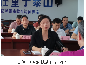陆主席介绍了防城港市的基础教育、师资力量、人才引进和待遇、教师成长平台,以及初、中、高等教育发展规划等事项。并对北部湾大学一行的“送商”活动表示感谢,同时肯定了我校毕业生在防城港市的工作表现,也希望校地合作能够开花结果。
