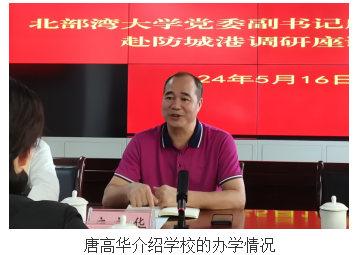 唐书记介绍了来访目的、学校历史沿革、办学现状、专业特色和发展方向等内容,同时表示北部湾大学与防城港市在基础教育、研究生培养、科教融合、游学研学、高等教育和国际化拓展方面有巨大的合作空间,并希望能够开展进一步合作。