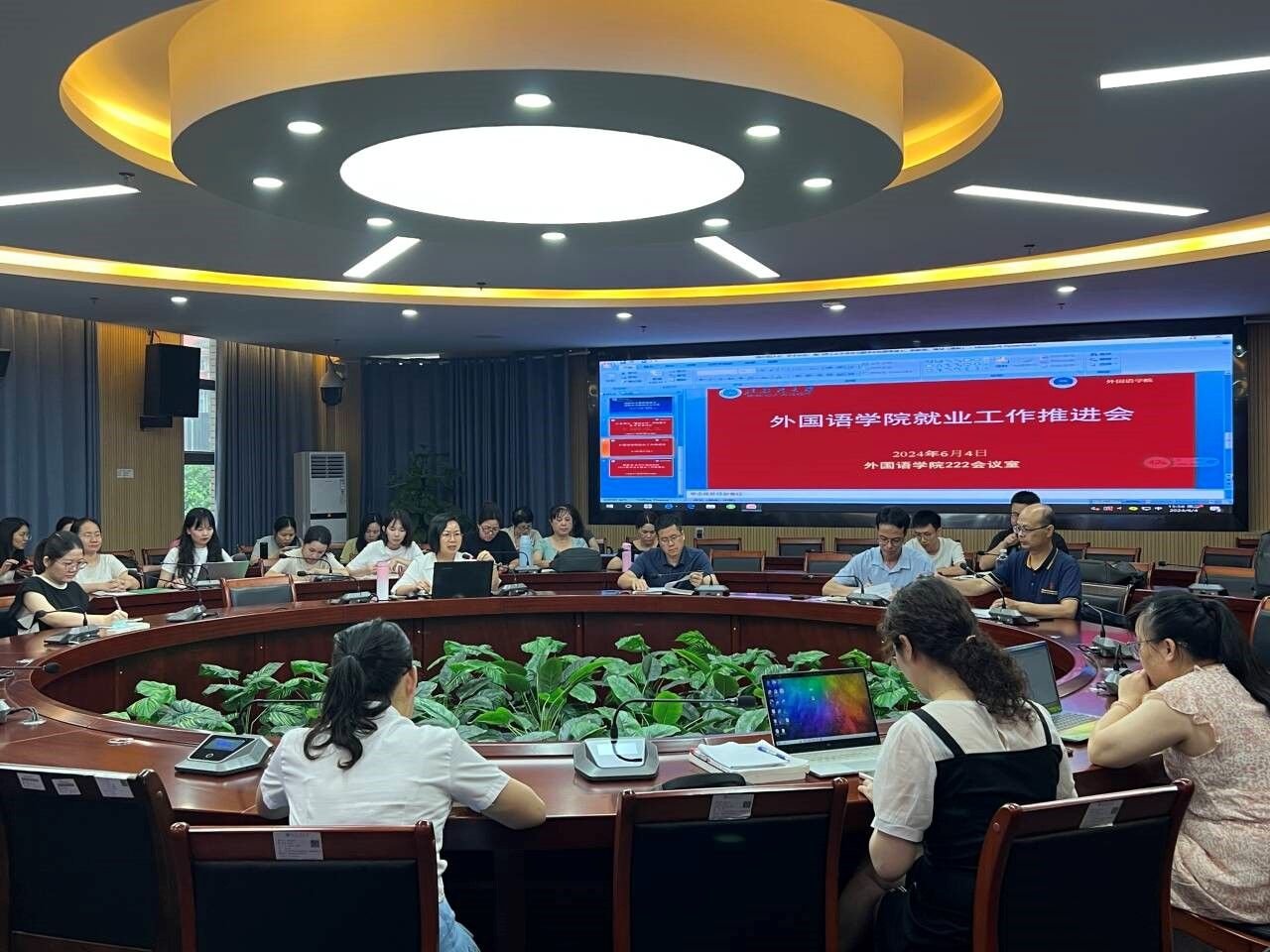 6月4日,外国语学院在国际交流中心222会议室召开了2024届毕业生就业工作推进会,旨在进一步促进毕业生就业工作的顺利进行。学院全体在家领导和就业指导老师参加会议。