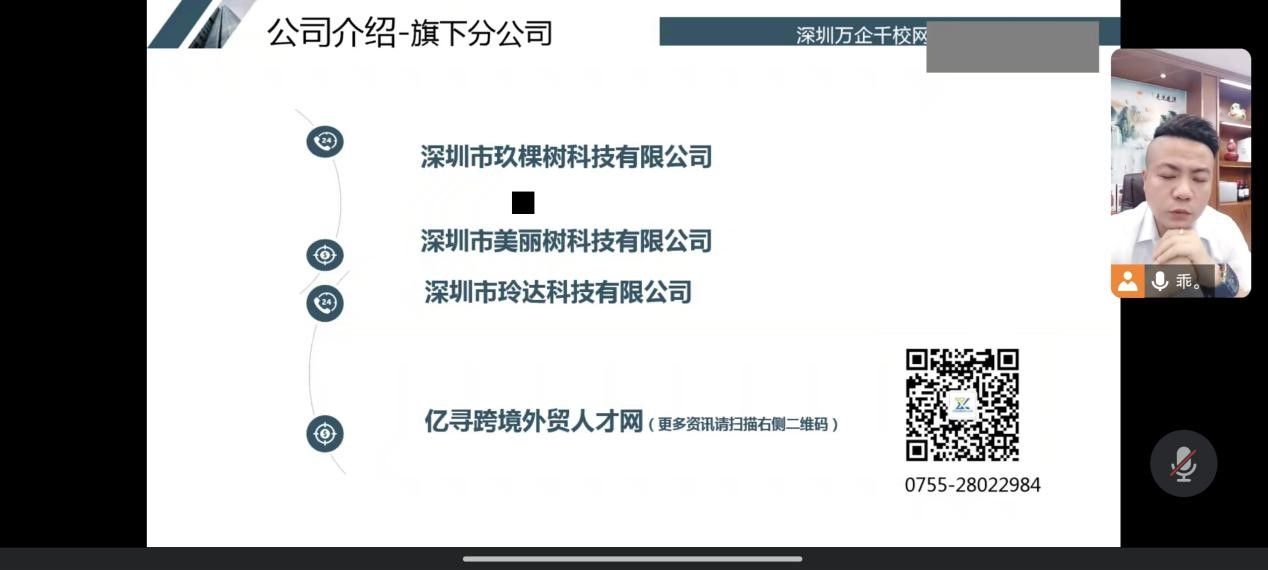 6月26日,深圳市万企千校网络科技有限公司在腾讯会议上成功举办了一场就业宣讲会,吸引了外国语学院英语专业学生80余人参加。本次就业宣讲会旨在为即将毕业的学生提供就业机会和职业规划建议。来自深圳市万企千校网络科技有限公司的招聘团队向参会学生介绍了公司的发展历程、业务范围以及未来发展规划、招聘政策和岗位需求。与会学生积极参与互动,就公司的发展前景、工作环境以及薪酬福利等方面提出了许多问题。招聘团队成员耐心解答了学生们的疑问,并对公司的未来发展方向进行了深入的交流和探讨。