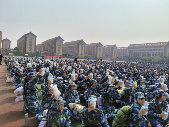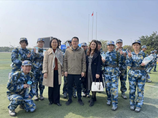 在活动中,潘书记和伍副书记深入军训现场,亲切询问了新生们的军训情况,了解他们在训练中的感受以及遇到的困难。潘书记表示,军训不仅是对同学们身体素质的锻炼,更是培养团队合作精神和坚韧意志的重要环节。他鼓励同学们珍惜这段宝贵的经历,努力克服困难,锻炼自己的意志品质。伍副书记在发言中指出,学院将持续关注新生的军训情况,确保每位同学在军训期间的需求得到及时反馈。为表达对新生们的关怀,学院为每位参与军训的学生准备了慰问饮品,帮助他们在训练后及时补充能量。