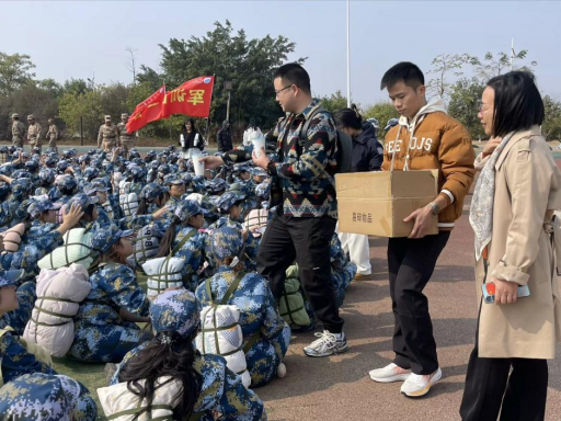 为了解2024级新生军训训练情况,给参加军训的同学们送上温暖与鼓励,2025年1月9日,学院在西区田径场组织了军训慰问活动。此次活动由学院党委书记潘文昊、副书记伍红艺带队,全体辅导员以及全体新生班主任共同参与。
