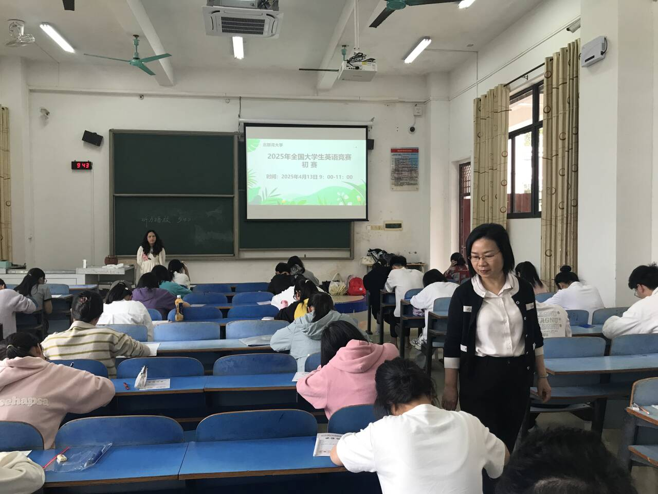 由国际英语外语教师协会中国英语外语教师协会和高等学校大学外语教学研究会联合举办 2025年第二十四届全国大学生英语竞赛初赛已于2025年4月13日顺利举行!我校初赛由外国语学院大学外语教学部承办,我院领导高度重视本次赛事,比赛当日,外国语学院伍红艺副书记、大学外语教学部刘丹主任到场指导并巡考。