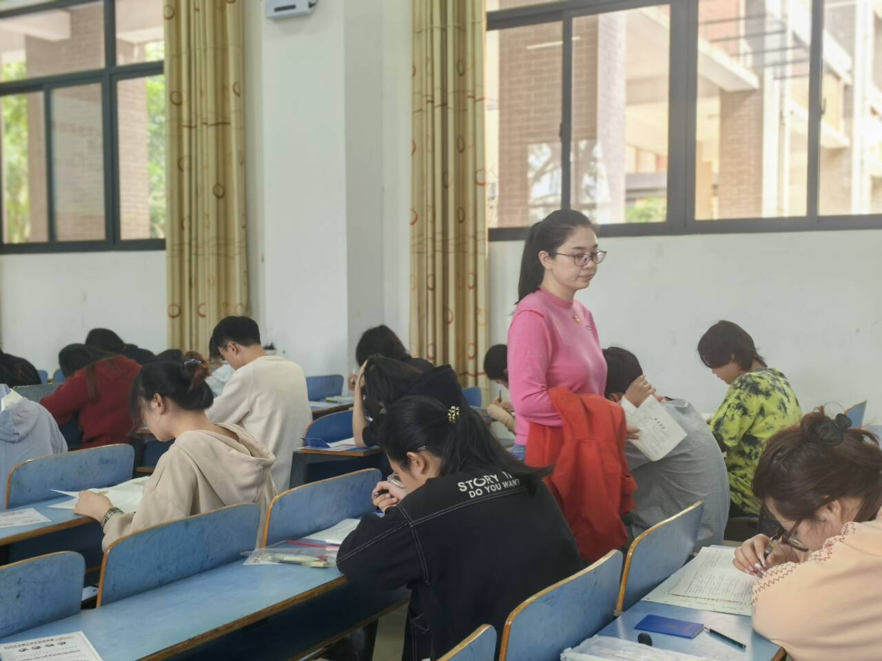 图2:外国语学院大外部刘丹主任进行巡考工作