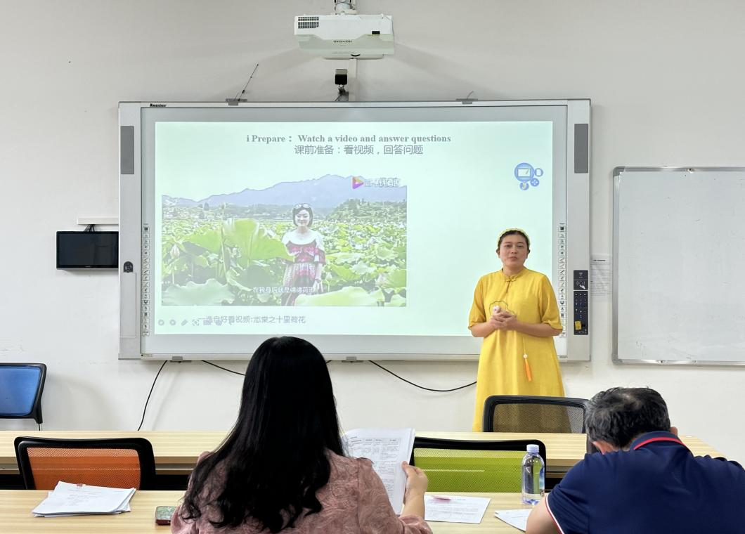 参赛教师聚焦课程节段设计,将跨文化案例、国情知识等融入教学,通过多媒体课件、互动问答等形式呈现教学特色。英语专业教师以情景模拟强化语言应用,非通用语教师结合区域文化拓展教学维度,展现出扎实的专业功底与创新教学思维。课堂教学中,教师们注重教学内容与教学设计的一致性,从学情分析到重难点突破形成完整教学链条,获评委肯定。