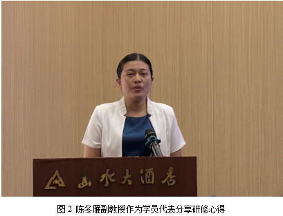 在研修结业仪式环节,我院教师陈冬雁副教授作为研修学员代表发言,分享研修心得。陈冬雁老师总结道:“数智技术如外语教学与研究的‘他山之石’,为外语学科的跨学科研究开辟了新路径。未来将在教学和科研中继续深挖数智技术的潜力!”