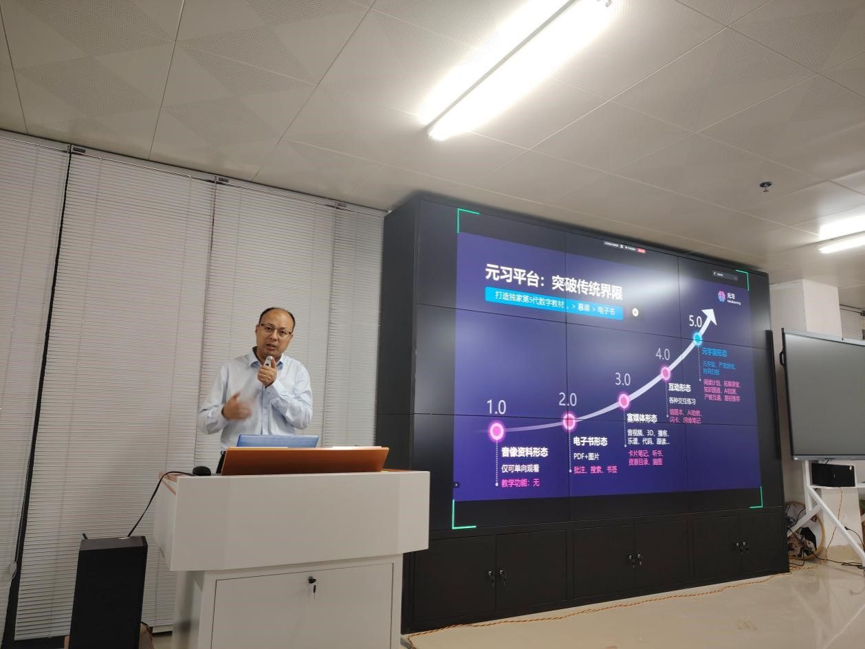 为推动数字教育资源建设,提升教师数字教材开发能力,9月2日下午3点,学院邀请舟道教育科技销售总监曹磊作数字教材专题分享,学院全体教职工到场聆听。