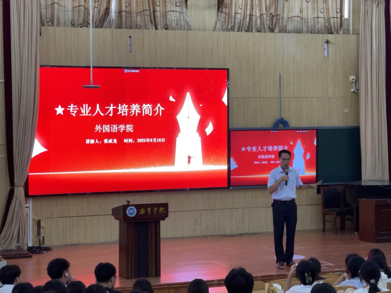 2025年9月16日下午,北部湾大学外国语学院在教育学院阶梯教室IB-115举行了2025级新生入学教育系列活动。本次活动由学院学工办统一组织,面向全体新生,旨在帮助同学们尽快适应大学环境、明确学业规划、增强安全意识,为顺利开启大学生活奠定基础。