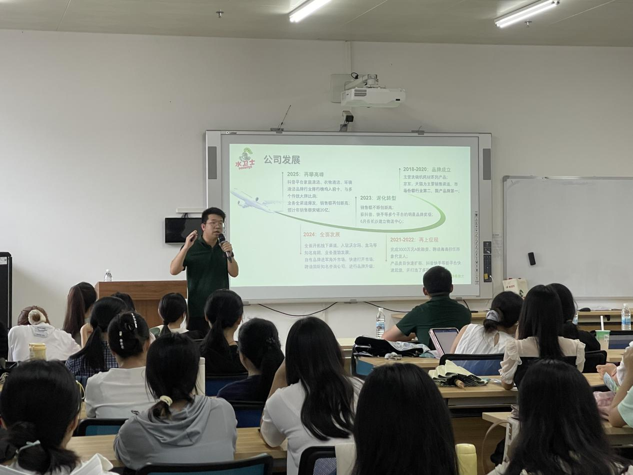 2025年10月10日,广东水卫士生物科技有限公司、健盛集团到外国语学院举办宣讲会。宣讲会场分别设在大学生创业园406和410教室。外国语学院泰语、越南语、英语专业120余名毕业生参加了宣讲会。