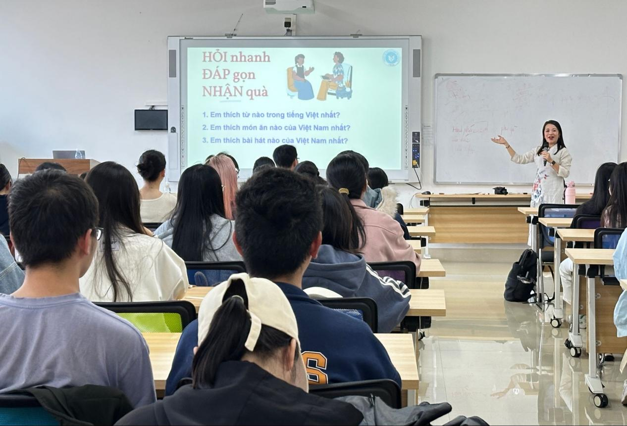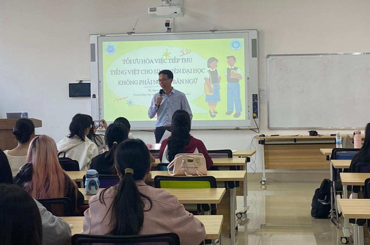讲座伊始,阮秋琼博士凭借深厚专业素养,深入剖析越南语与汉语的异同。语音上,越南语音节结构简单但声调独特,给中国学生发音和声调把握带来挑战;词汇方面,大量汉语借词既便利又有语义和用法差异;语法上,语序和助词系统不同,常致学生句子构建混淆。了解异同后,阮博士精准定位学生学习困境:词汇记忆与运用因词汇丰富且与汉语有微妙差异而力不从心;语法结构复杂灵活,复杂句式让学生无从下手;语言运用技能上,口语、听力、书面表达不足制约能力提升;跨文化交际中,缺乏越南文化背景知识常致误解或沟通不畅。针对这些问题,阮博士提出多元对策:词汇学习采用联想、词根词缀记忆法,结合语境积累运用,借助软件提高效率;语法学习通过大量阅读写作熟悉规则,分析模仿例句培养语感;提升语言运用技能鼓励学生参与课堂口语、实践和模拟对话活动,书面表达注重规范技巧训练并多请教批改反馈;跨文化交际技能培养方面,学生应主动了解越南历史文化知识,拓宽视野、增进理解,交流时尊重文化差异,避免误解。